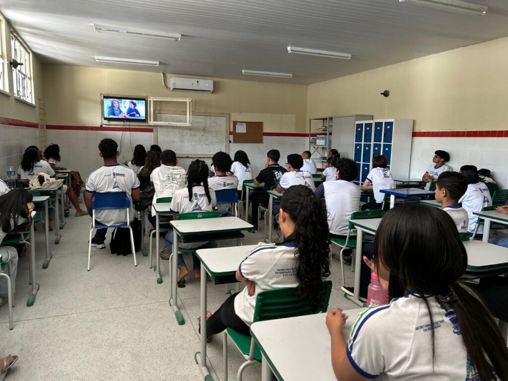Estudantes assistem a sessão do projeto EGBÉ — Cinema Negro nas Escolas em Sergipe